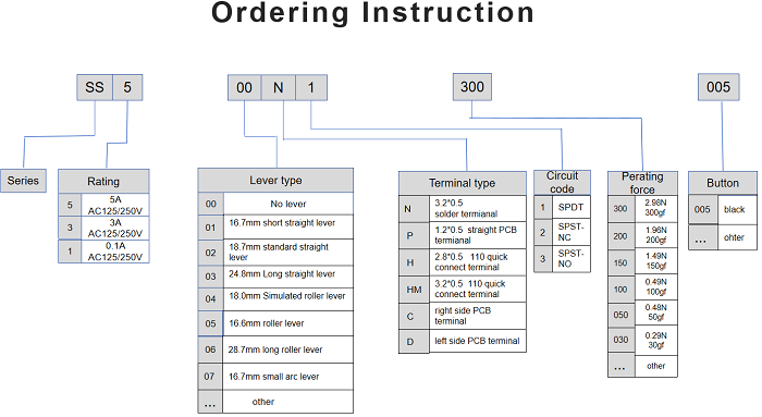 Terminal type:Solder terminal/Straight PCB terminal/110 quick connect terminal/ left side PCB terminal/ right side PCB terminal