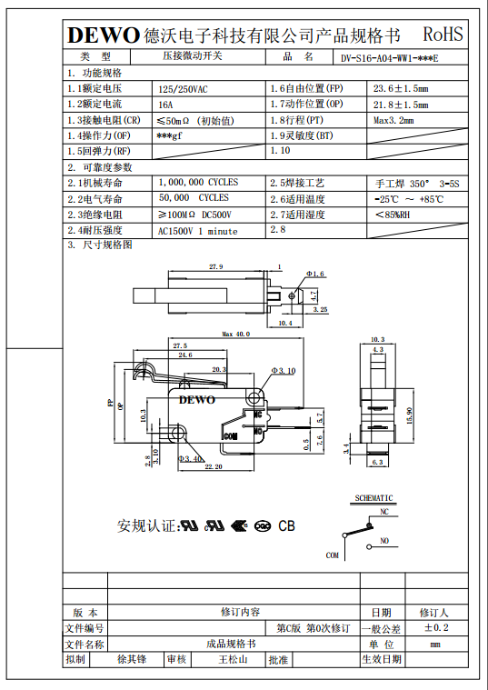 DV-16-A04-WW1-100E型微動開關