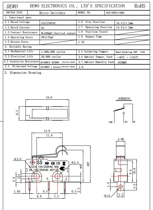 SS5-08N1-050微動開關