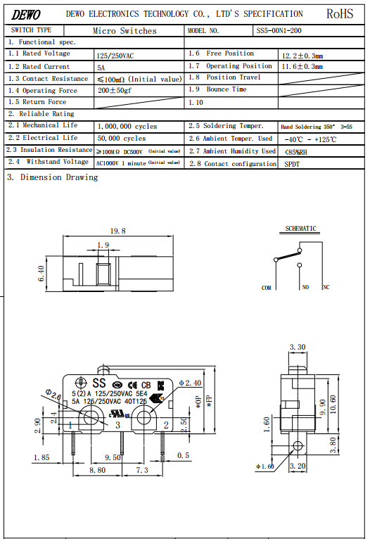 SS5-00N1-200微動開關