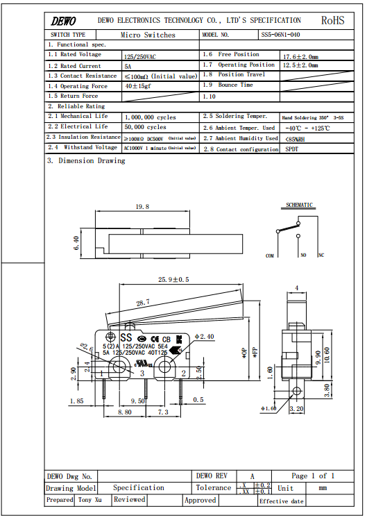 SS5-06N1辦公設備微動開關